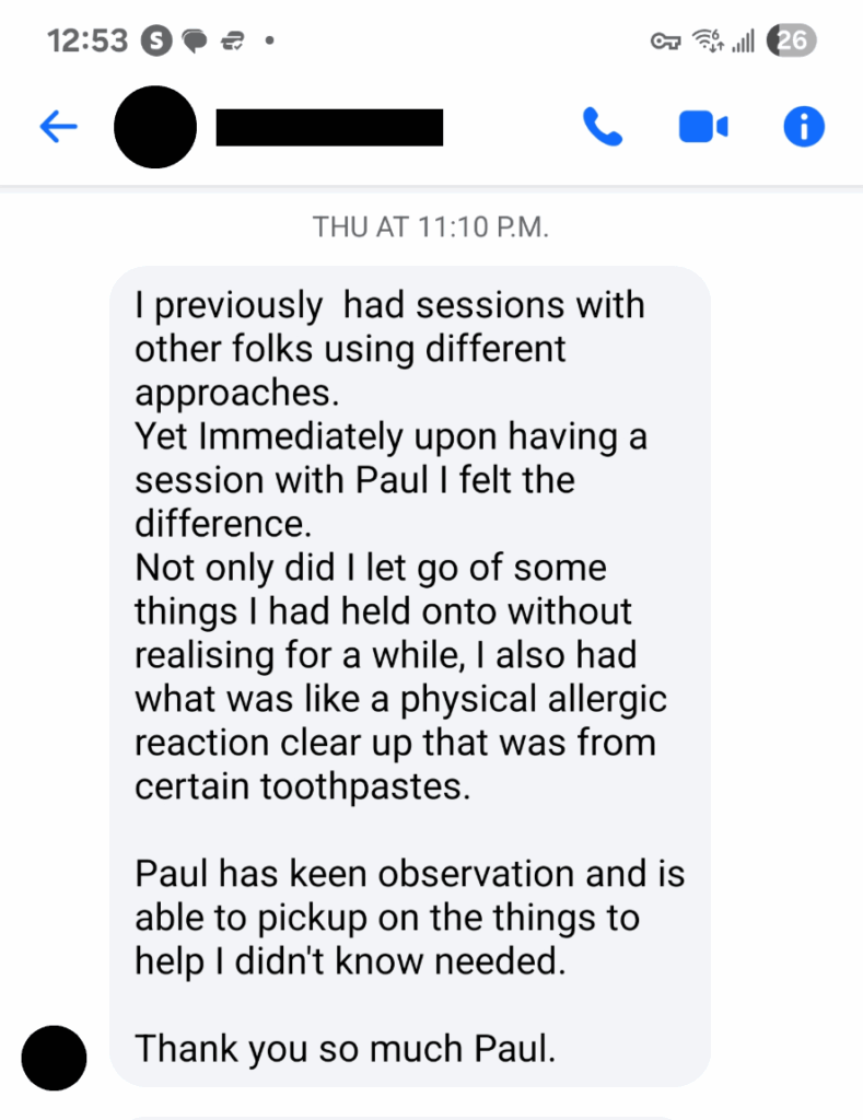 Working with Paul has been a pleasure. He is very professional. He is very clear and explains the process in detail. I felt very comfortable during my session. I feel like the issues I came with are almost gone and I’m very grateful for this therapy.