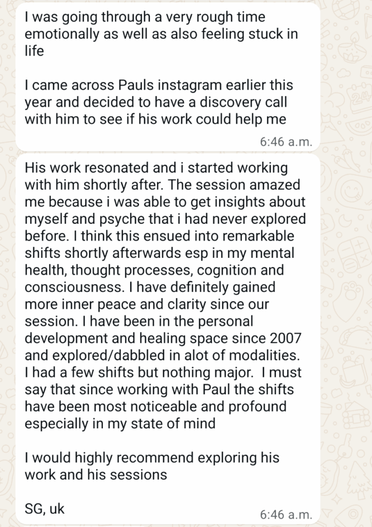 “Right after my session with Paul, I felt really great. Then I needed some time to process all of it.