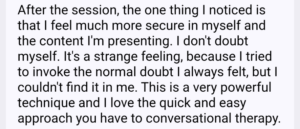 “Thanks Paul, so far everything is fantastic. Although, now I want to find more flaws to fix with hypnosis. It was a truly interesting experience…”