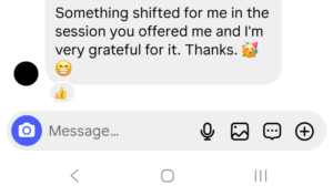 A few days later I noticed that my behaviour changed. I started sharing with people, allowing myself to be vulnerable, and not necessarily only positive stuff. That wouldn’t have happened before the session. Also things are getting much more into the flow with much less resistance.