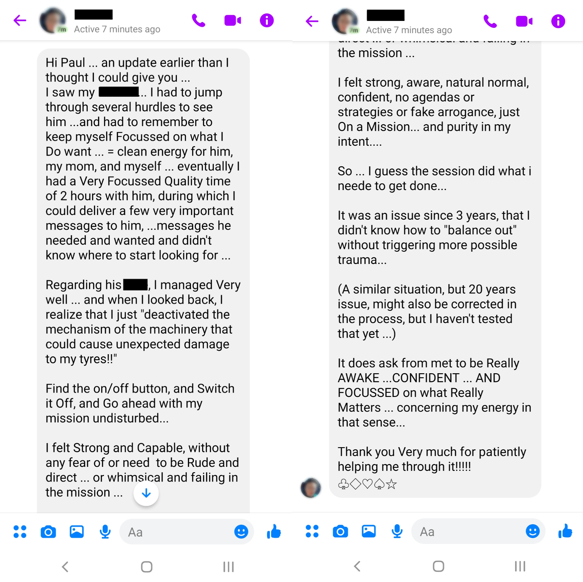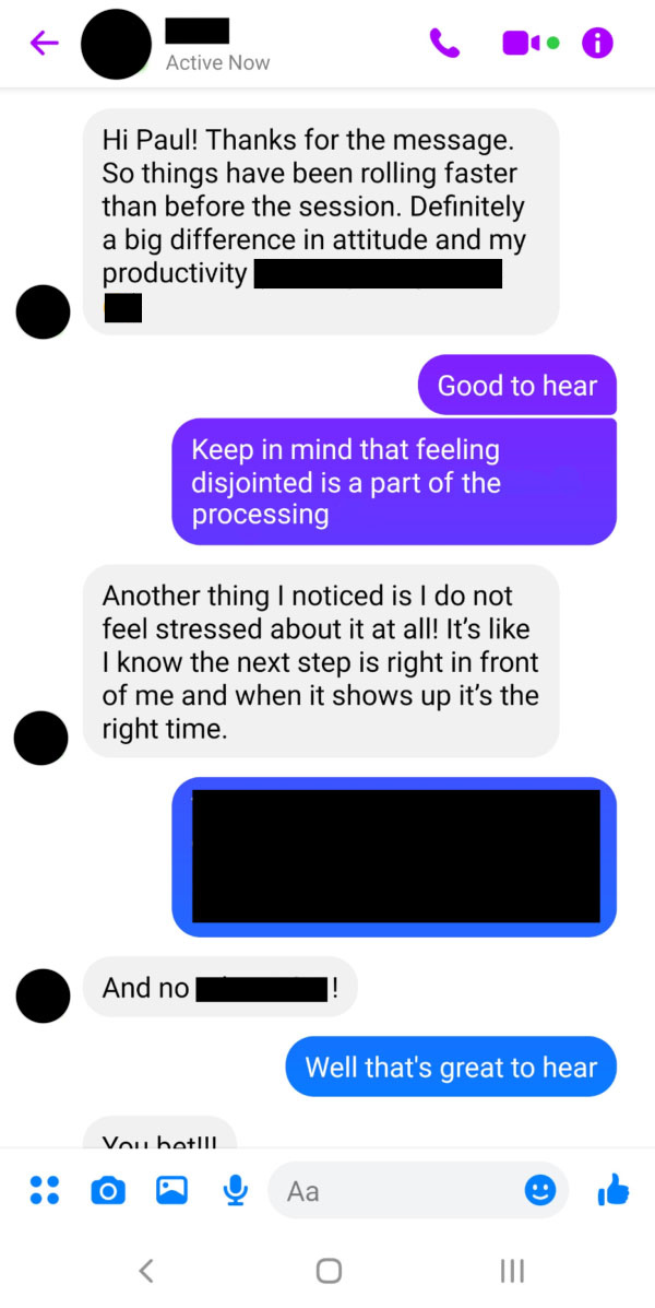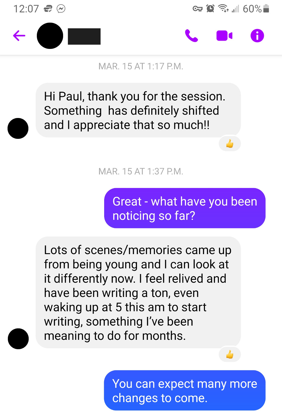 “Right after my session with Paul, I felt really great. Then I needed some time to process all of it.