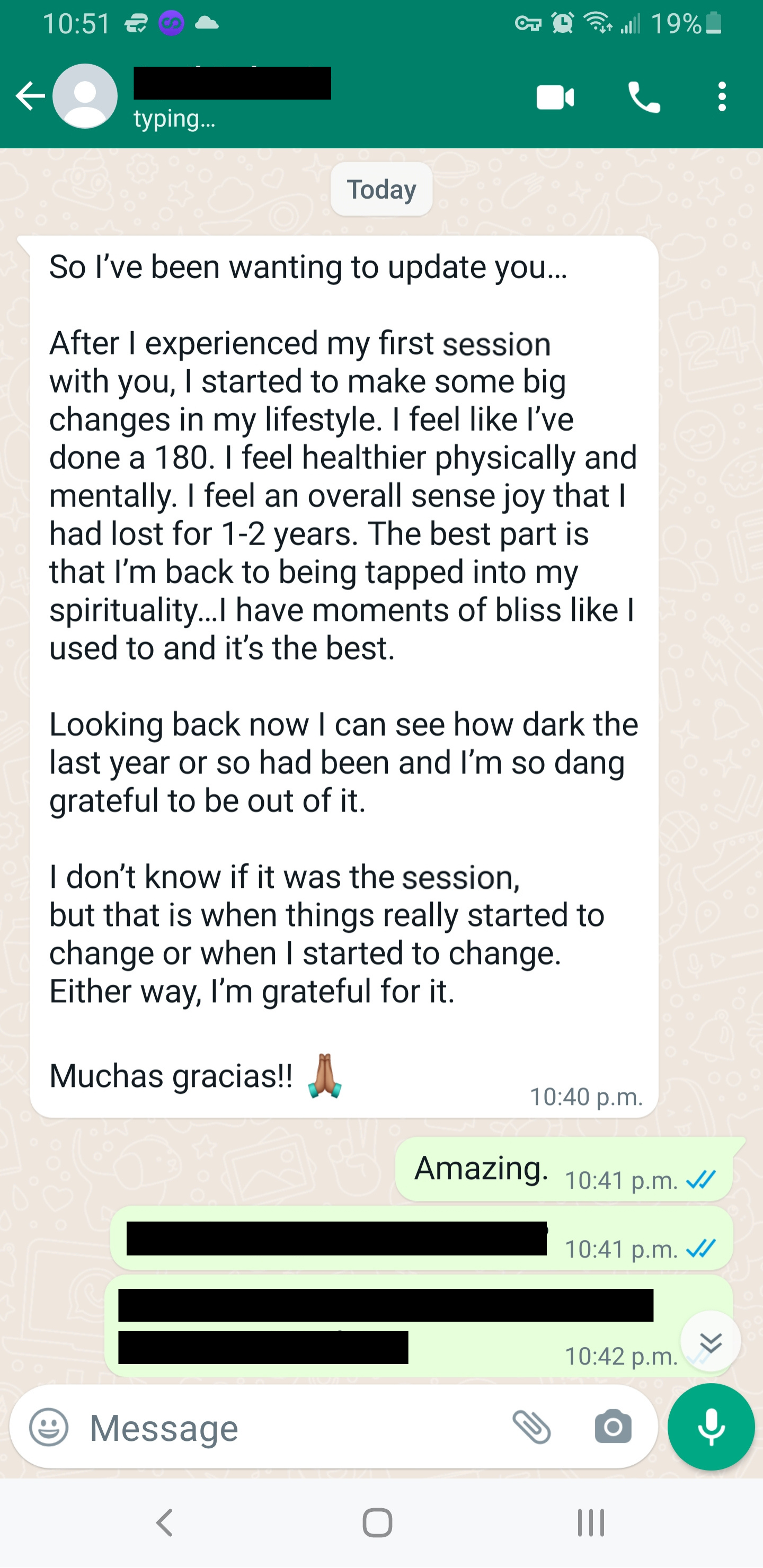 “I can’t begin to describe how many positive changes I have had since our session. Absolutely amazing!! Highly recommended.” – Dina Mantula