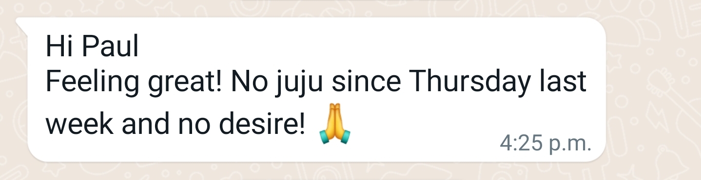 While there were a couple relapses through the process, I am staying sober today which is what matters most. Paul has definitely improved my quality of life. I was able to avoid the heavy cravings that I had during conventional treatments (in-patient and outpatient rehab, day programs, seeing a psychologist).