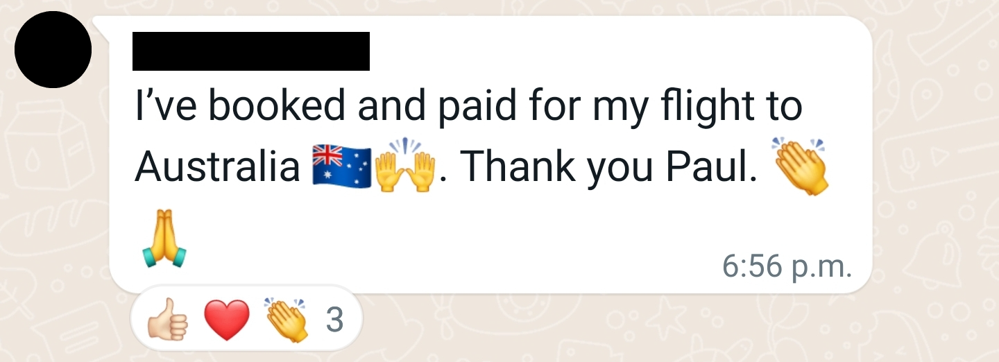 My entire experience working with Paul was very positive. His calm, focused approach instilled confidence in his work and helped me retain focus. His style is centered, direct and compassionate. Paul is also attentive to communication through WhatsApp and responds very quickly. I always felt supported. I never doubted that working with Paul and his unique approach would help me, and it did!